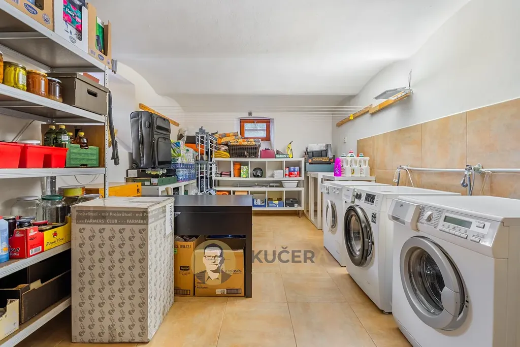 - prádelna 16 m², technická místnost 80 m², sklep 64 m²