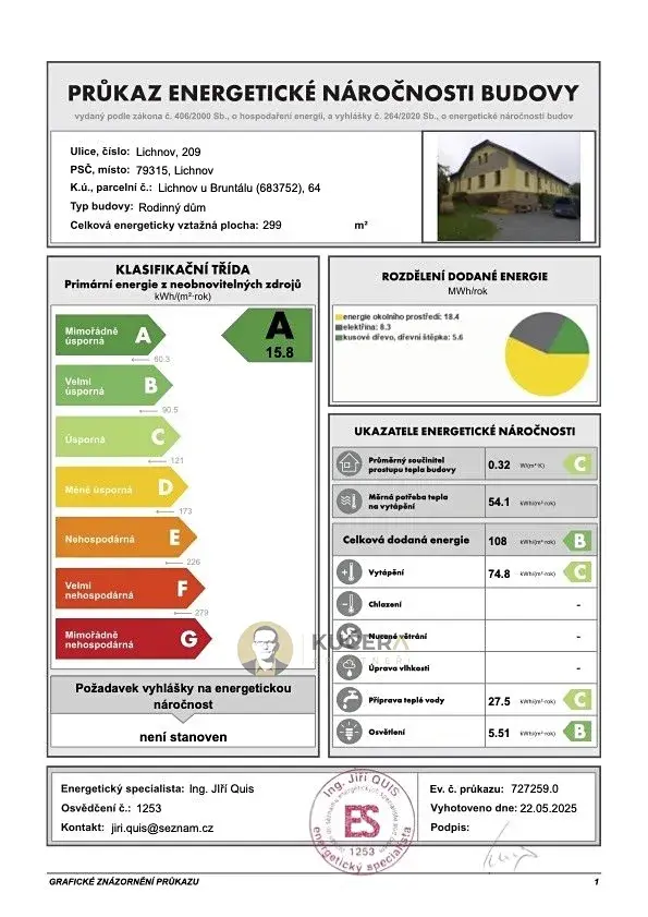 | Ukazatel energetické náročnosti | 15.8 kWh/m2 za rok |