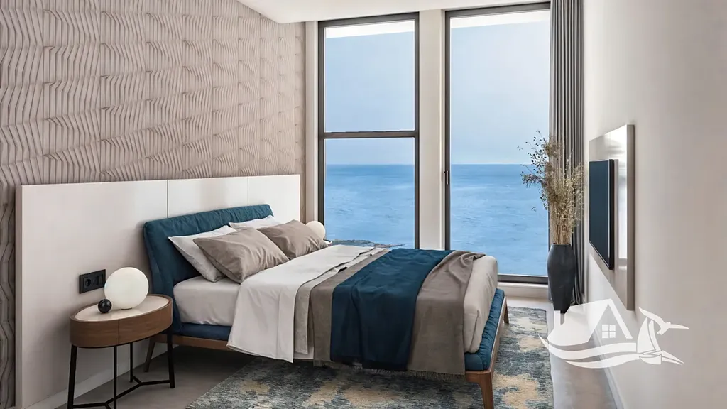 Celková plocha 139 m² nabízí prostorný obývací pokoj s kuchyňským koutem a panoramatickými okny, tři samostatné ložnice a tři luxusní koupelny. Hlavní koupelna poskytuje unikátní zážitek díky velkému francouzskému oknu s přímým výhledem na moře, který vytváří atmosféru soukromého spa. Dispozice je navržena s důrazem na komfort, funkčnost a maximální soukromí pro každého člena domácnosti i hosty.