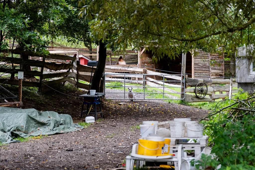A co dalšího tu najdete? Je tu samostatná stodola na skladování sena a dalších věcí, přístřešek, voliéry pro ptáky, oplocení a ohradníky pro zvířata, domky pro zvířata. Dokonce je tu položený štěrkový základ ve tvaru kruhu pro výstavbu teepee. (Nechci vám vnucovat myšlenky, ale glampingové podnikání je v kurzu.)