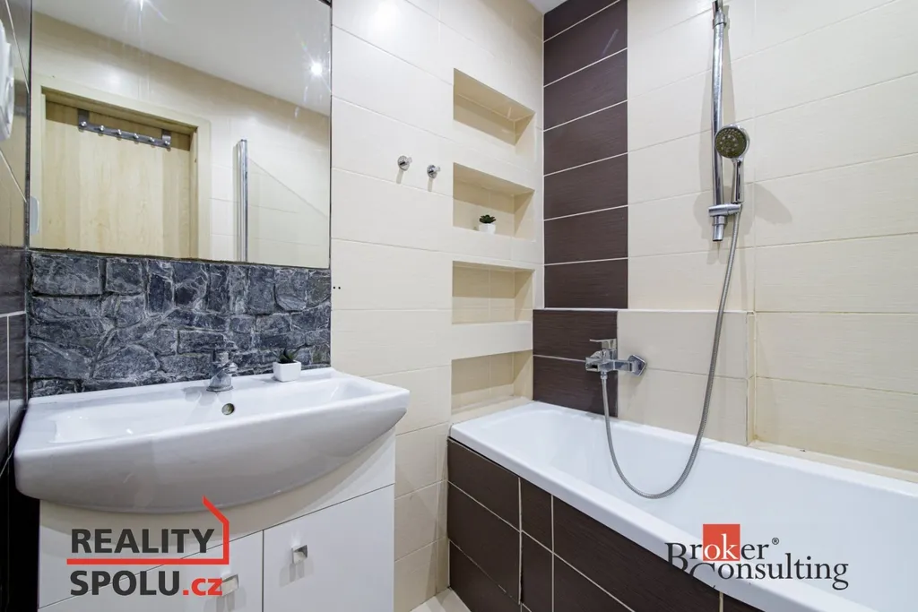 Byt prošel kompletní a vkusnou rekonstrukcí a nabízí příjemné bydlení s promyšlenou dispozicí. Dominantou je obývací pokoj s kuchyňským koutem, dále ložnice s prostornou šatnou a koupelna s toaletou. K bytu náleží také sklepní kóje, která poskytuje další úložný prostor. Byt zůstává i částečně vybavený: masivní postel včetně roštu, trouba, televize, lednice což umožňuje pohodlnější stěhování do nového domova.
