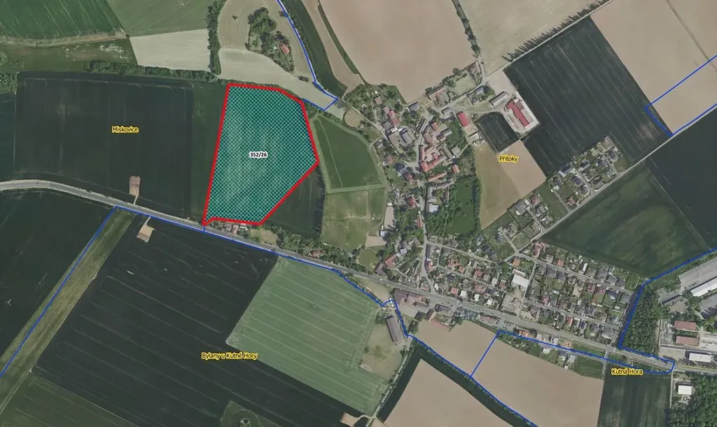 Nabízíme k prodeji zajímavý pozemek ve většinovém vlastnictví o velikosti podílu 43216m v katastrálním území Miskovice. Parcela se nachází na rozhraní katastru Miskovice/Přítoky/Bylany a je v současné době obhospodařován na základě platné pachtovní smlouvy s krátkou výpovědní lhůtou. Díky poloze je zajímavým místem pro změnu územního plánu. Pozemek je přístupný s hlavní komunikace.