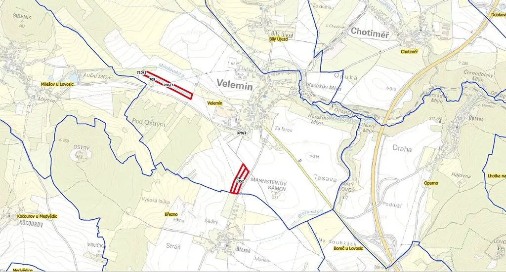 Nabízíme k prodeji krásné pozemky v podílovém vlastnictví o velikosti podílu 5988m v katastrálním území Velemín. Parcely se nachází v okrajové části katastru a jsou v současné době obhospodařován na základě platné pachtovní smlouvy s krátkou výpovědní lhůtou. Všechny pozemky jsou dobře přístupné ze silnice nebo cesty.