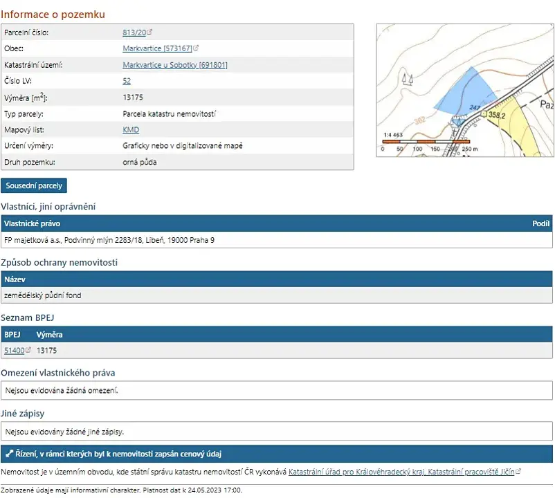Nenechte si ujít nejnovější nabídky prodeje polí v Markvarticích (okr. Jičín).