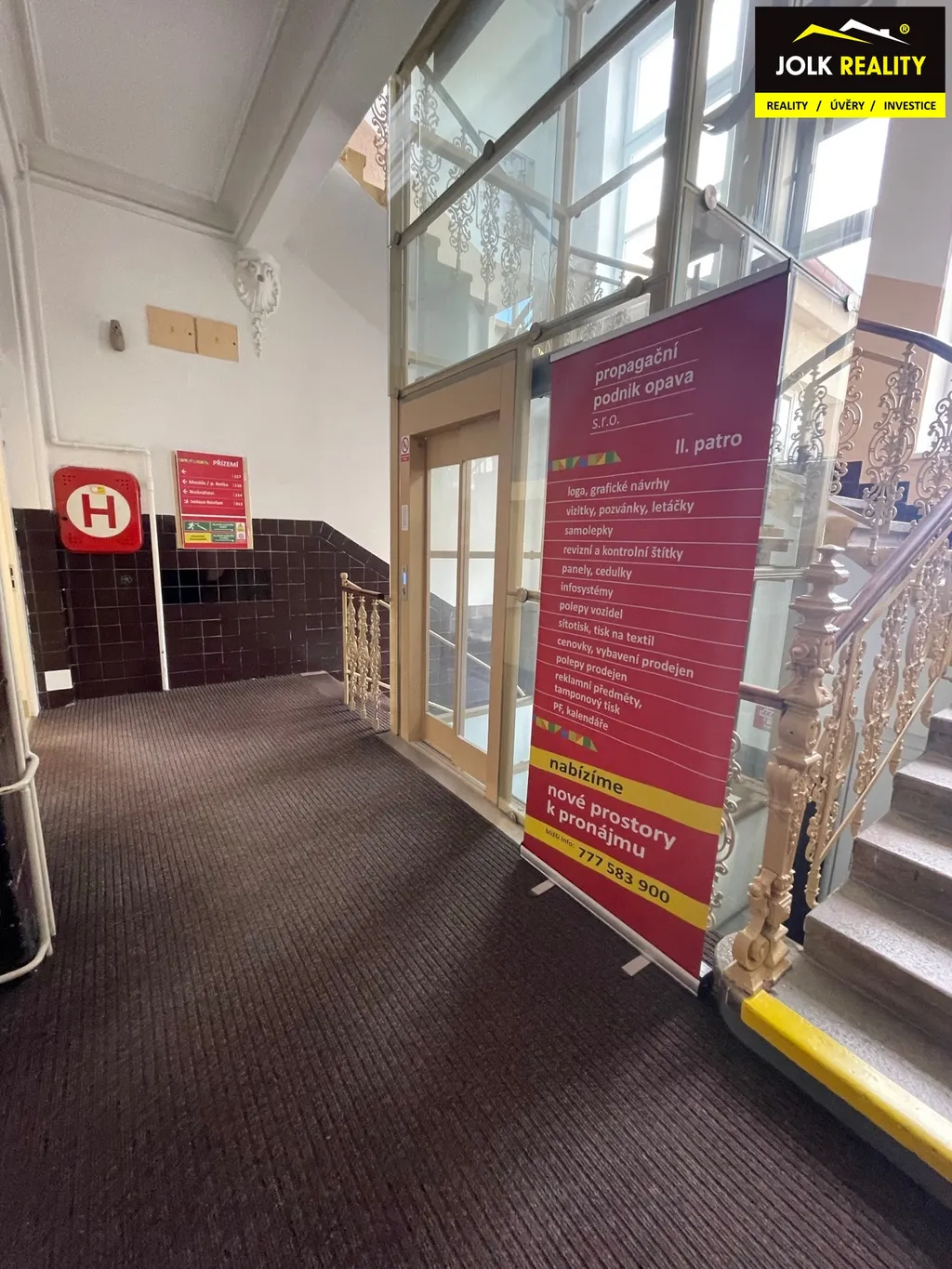 Nabízím Vám exkluzivně k pronájmu nově zrekonstruovaný reprezentativní komerční nebytový prostor o rozloze 27 m2 v centru Opavy, ve 4. NP s výtahem v cihlovém komerčním objektu. Prostor lze využívat např. jako kancelář, ateliér, sídlo firmy, pro provoz poradenské činnosti, internet. obchodu apod. Cena nájmu je bez služeb. Služby vychází na 3.500,- Kč. V prostoru je možnost využít i klimatizační jednotky. Na chodbě se pak nachází toalety. Majitel požaduje dvě kauce. Po dohodě je možné umístění firemního označení na budově. Majitel preferuje dlouhodobý pronájem. V případě zájmu o prohlídku, mě prosím kontaktujte.