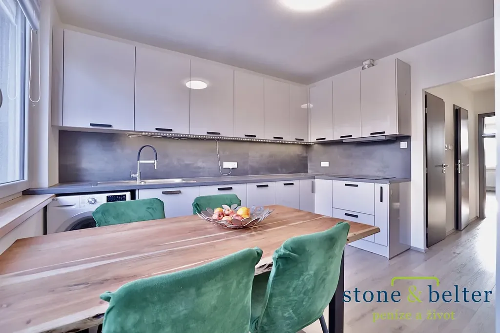 Byt prošel kompletní rekonstrukcí (2023) včetně vybavení a je ve stavu „jako nový“. Prodává se částečně zařízený nábytkem, takže je ideální pro ty, kteří chtějí rychlé nastěhování bez dalších větších investic.