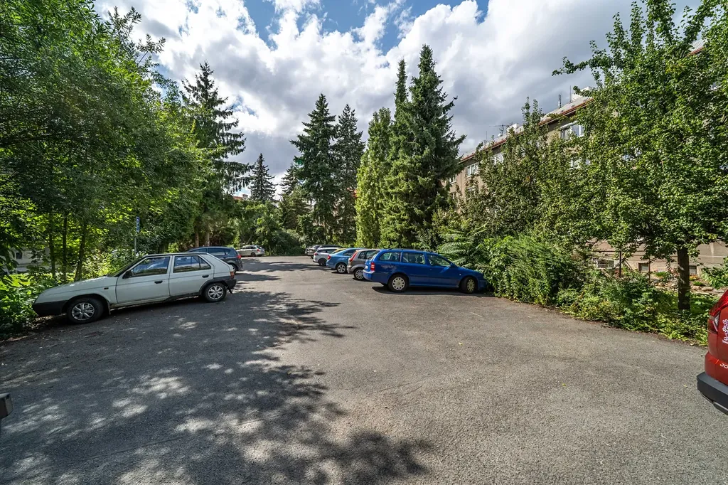 Velkou výhodou je možnost parkování ve vnitrobloku domu s uzamykatelným vjezdem.