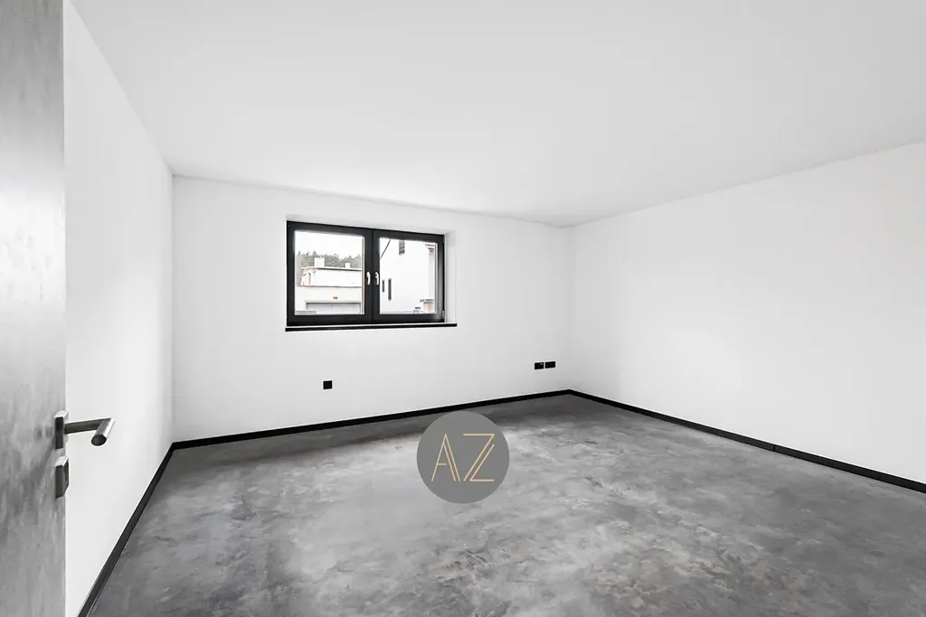 Částečně zastřešená terasa 35 m2 je přístupná přímo z obývacího pokoje. Z chodby u obývacího pokoje se vchází do pracovny a ložnice se šatnami, koupelnou a WC.
