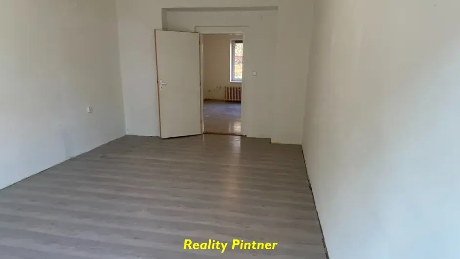 Byt je spíše v původním stavu a je ve zvýšeném přízemí. Má však plastová okna přibližně 3 m nad terénem a v nich stínění. V kuchyňském okně je i sušák na prádlo. V kuchyni je plynový sporák a praktická zděná spíž. Byt nabízí bez vybavení, pouze v kuchyni je stůl, dvě židle a všude základní osvětlení. V bytě je přípojka optického internetu. Nájemce si o něj může požádat.