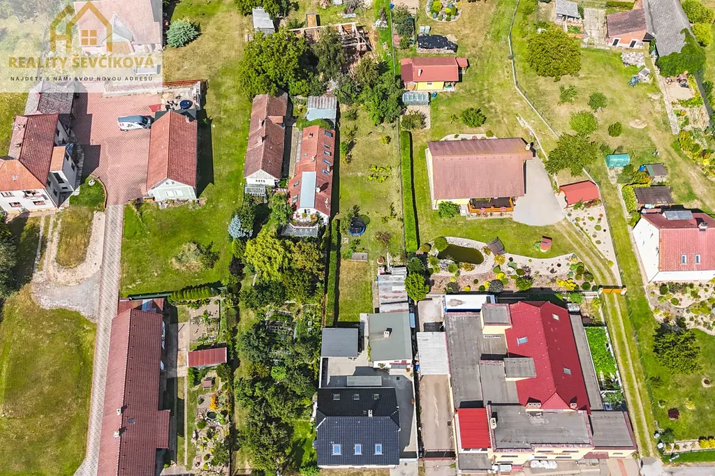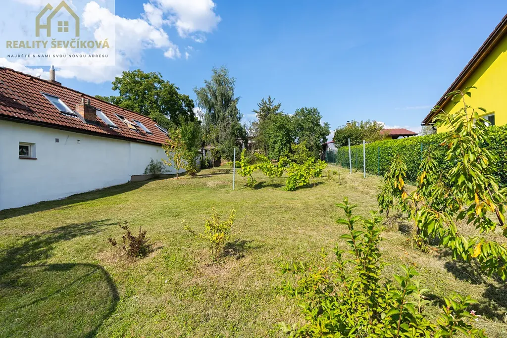 Na pozemku je dvůr a vjezd do garáže se zámkovou dlažbou, pergola a garáž propojená s dílnou, komorou a bývalou prádelnou (celková plocha 38 m²), která je částečně podsklepena a nabízí možnost vybudování letní kuchyně. Za touto stavbou se nachází prostorná zastřešená zpevněná plocha. Zahrada je mírně svažitá, pečlivě udržovaná a poskytuje maximum soukromí, a to i přes své umístění v zástavbě.