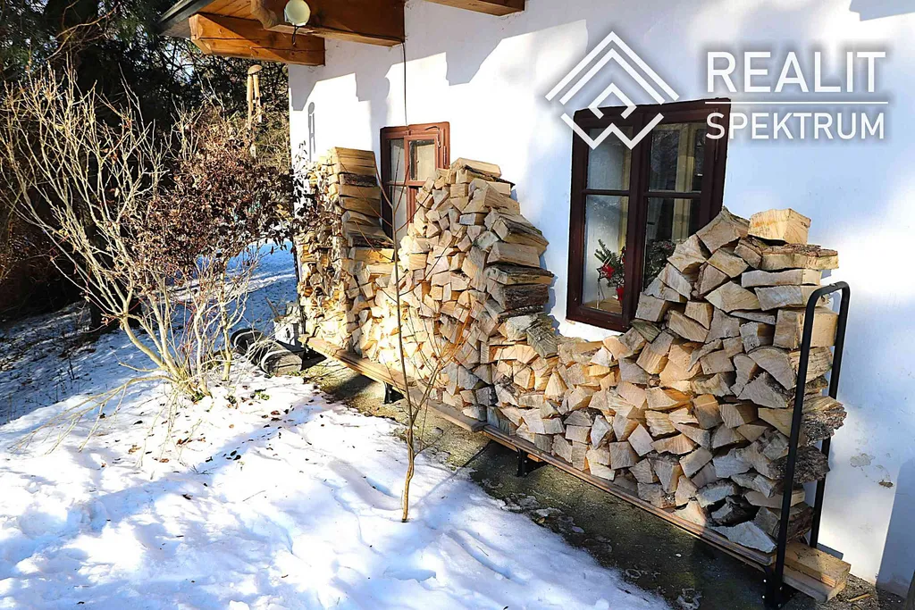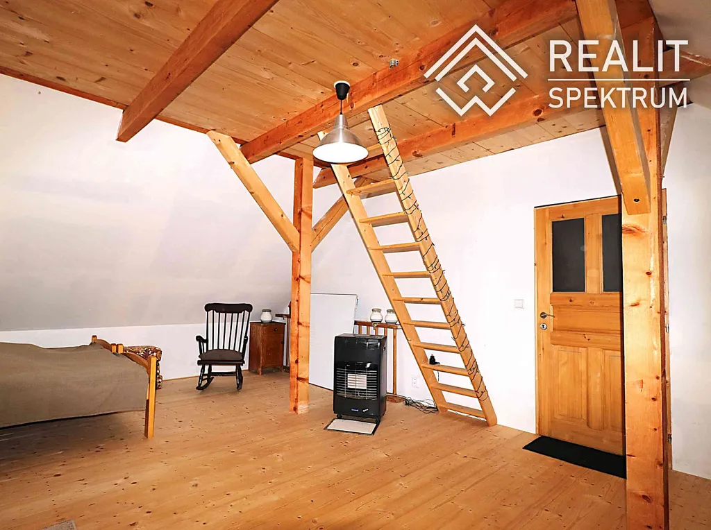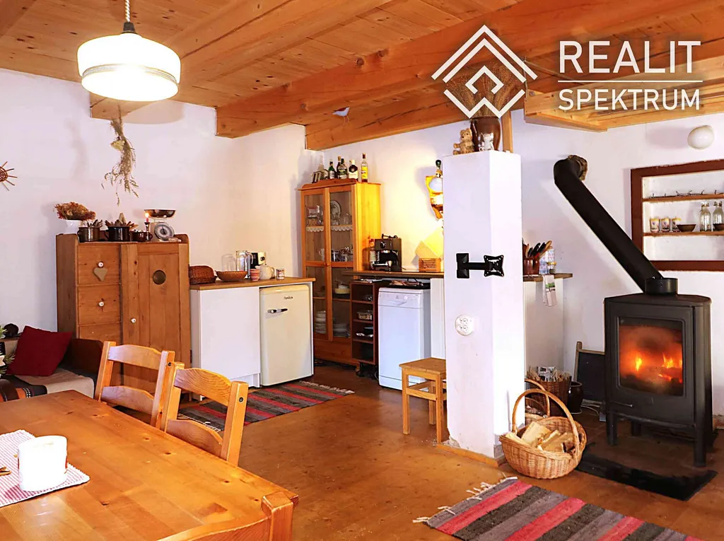 • Vytápění: Krbová kamna ( komín je vyvložkovaný) + v patře mobilní elektrické přímotopy s dálkovým ovládáním (zatopíte si mobilem ještě před odjezdem z domova).
