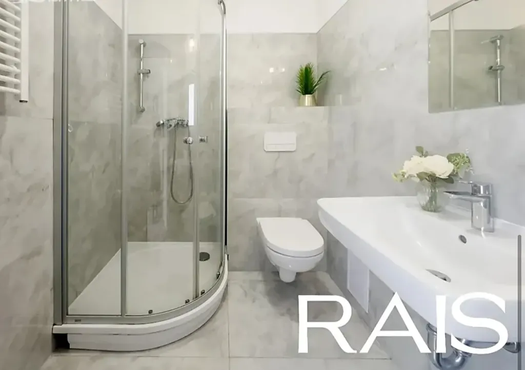 Interiér je připraven na instalaci kuchyňské linky. Koupelna je provedena v nadstandardním designu s luxusními velkoformátovými obklady v onyxovém dekoru a je zde nachystána přípojka na pračku i sušičku. Plastová okna s izolačním dvojsklem zajišťují klidné prostředí, zatímco vysoké stropy dodávají prostoru vzdušnost a elegantní charakter. Vytápění i ohřev teplé vody jsou řešeny centrální plynovou kotelnou v domě. Energetická náročnost budovy odpovídá třídě E.