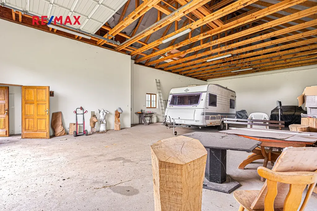 Ve výhradním zastoupení nabízíme prodej rodinného domu o mimořádné velikosti 555 m2 v obci Horní Libchava. Postaven byl v roce 2005 a je rozdělen na obytnou část a technickou část. V technické části domu se nachází 4 prostorné garáže a veliká hala + v horním patře je připraven prostor o velikosti 88 m2 pro vybudování samostatné bytové jednotky nebo kanceláří. Obytná část domu je podsklepená. Přesné zakreslení s rozměry budovy naleznete v přiložených půdorysech v tomto inzerátu. Tento dům nabízí příležitost pro vícegenerační bydlení, zároveň tak propojení bydlení a podnikání, pronájem technických částí (garáží a haly) atd. Nemovitost vyžaduje významnější opravy, mimo jiné opravu střechy a sanaci prasklin ve zdech.