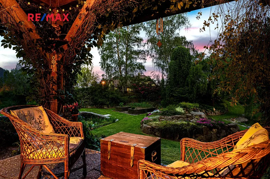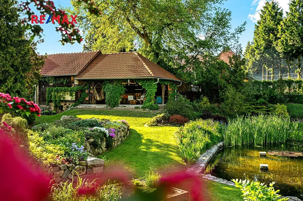 Samotná dechberoucí okrasná zahrada se vzrostlými stromy a dvěma jezírky, poskytuje maximální soukromí a vybízí k odpočinku či k setkávání s rodinou a přáteli. Najdete zde i užitnou část pro pěstování vlastní zeleniny. A jste-li milovníky přírody, jistě vás potěší množství živočichů, kteří zde našli své útočiště. V jarních a letních měsících se můžete zaposlouchat do ptačího zpěvu či milostného kuňkání žab. Pro údržbu zahrady vám ráda doporučím zahradníka.