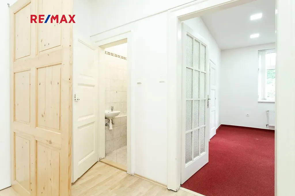 Nabízím k pronájmu reprezentativní kancelářské prostory o celkové výměře 80 m² ve 1. patře cihlové vily v ulici Višňová, Praha 4. Prostory tvoří tři samostatné místnosti, kuchyňka a sociální zázemí. Podlahy jsou kombinací parket a koberců.