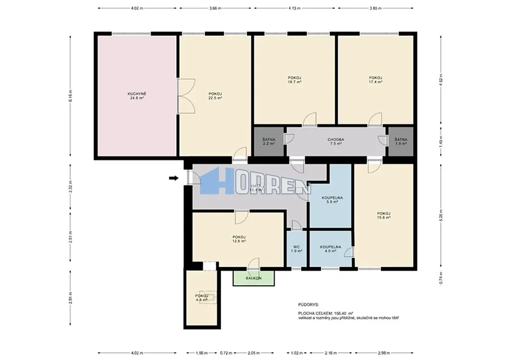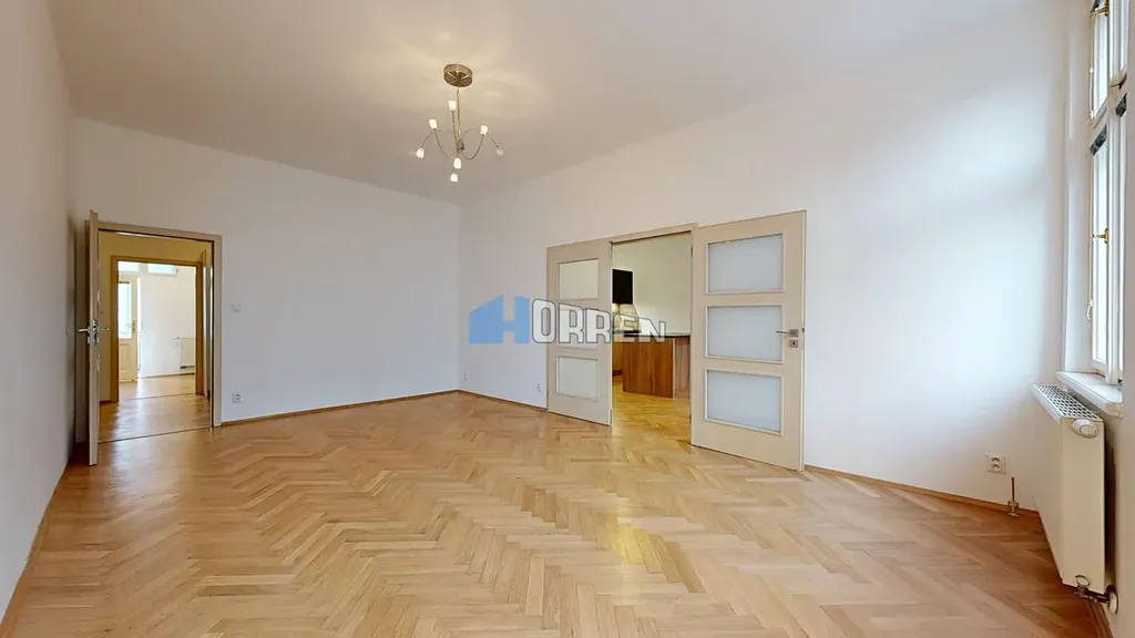 Nabízíme k pronájmu velký byt po rekonstrukci 5+1 s halou a balkonem - 168 m2 v centru Karlína, téměř u metra Křižíkova. Byt je situován do 3.patra cihlového domu s výtahem, s výhledem jednak do ulice Pobřežní, na nové administrativní budovy a dále pak do dvora obytného bloku. V bytě jsou k dispozici 2 koupeny s vanou i sprchovým koutem a praktickými otopnými žebříky. Prostorná kuchyně nabízí dostatek místa i pro větší jídelní stůl. Otevřením posuvných spojovacích dveří nám s obývacím pokojem vznikne krásný prostor téměř 50 m2.V bytě jsou vybudovány 2 šatny. Byt je nezařízený, pouze s plně vybavenou kuchyní se spotřebiči Philco (vestavěná lednice s mrazákem, varná deska, myčka, elektrická a mikrovlnná trouba, pračka..). Topení a teplou vodu zajišťuje plynový kotel Bosh. Podlahy pokrývají parkety a keramická dlažba. Vnitroblok na pavlačích je během roku osázen květinami a stěny jsou porostlé popínavými rostlinami. Dále je možnost parkování ve dvoře za poplatek 2.000 Kč+ DPH. V okolí je plná občanská vybavenost, metro a zastávka MHD je 1 min chůze. Sportovní i kulturní vyžití je v okolí bytu. Výhodné je i spojení s Holešovicemi novou lávkou. Volné ihned, Prohlídky po domluvě.