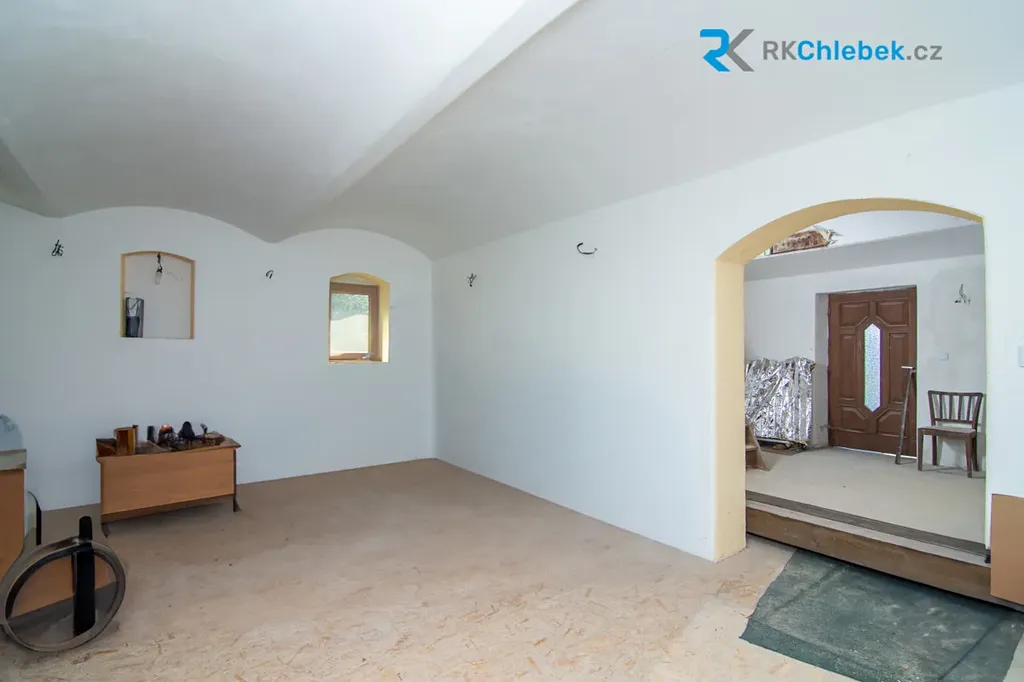 - dům s pozemkem 722 m² – ve fázi rekonstrukce, ideální k dokončení dle vlastních představ. Jeho součástí je také prostorná garáž, hospodářská budova a romantický vinný sklípek. Možnost využití půdních prostor.