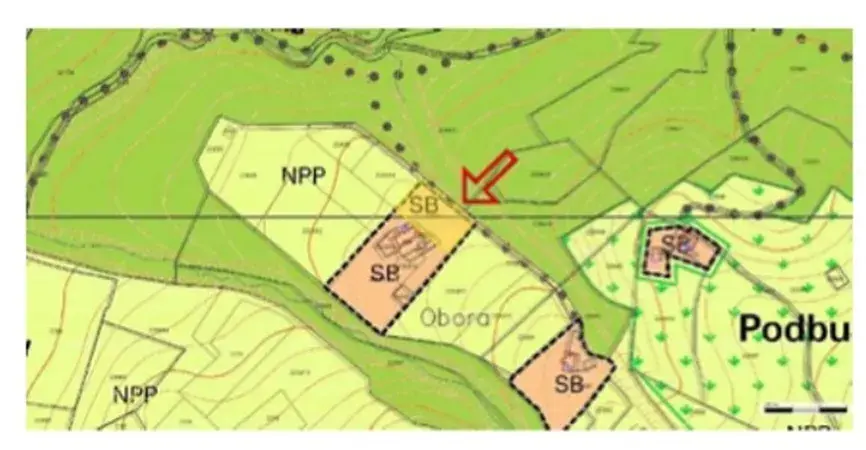 územního plánu je pozemek určen pro SB – společné bydlení, což umožňuje