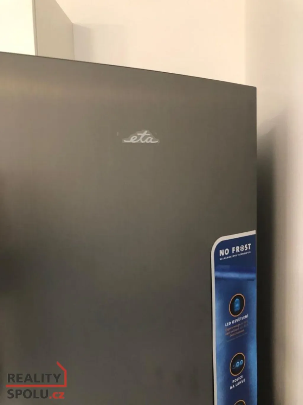Kuchyň je řešena moderní linkou s vestavěnými spotřebiči – indukční varná deska, elektrická trouba, digestoř, myčka nádobí a lednice.
