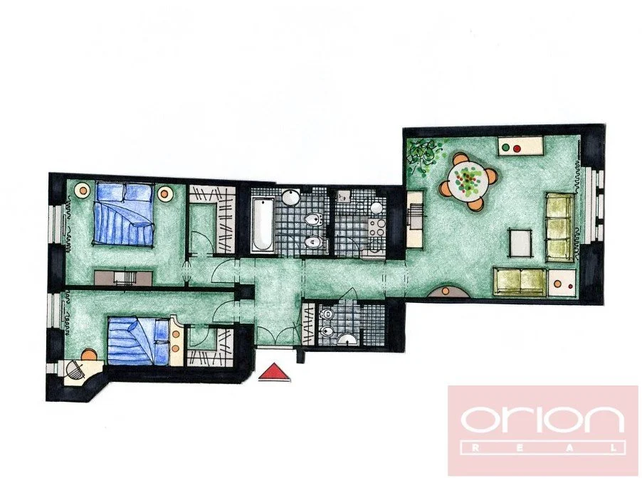 Nabízíme k pronájmu zařízený byt 3+1 ve 3. patře zrenovovaného domu s výtahem ve vyhledávané lokalitě Praha 2 - Nové Město. Byt má celkovou plochu 87 m2 a nabízí vstupní halu s vestavěnou šatní skříní, plně vybavenou kuchyň, prostorný obývací pokoj s jídelnou, 2 ložnice s šatnami, 2 koupelny se sprchovým koutem a vanou. Pouze pár kroků od stanice metra Karlovo náměstí. V blízkosti veškerá veškerá občanská vybavenost, školy, obchody a restaurace.