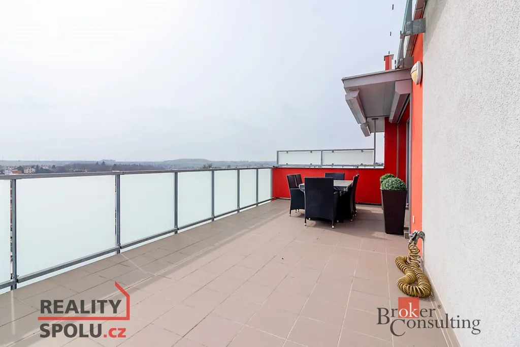Nabízím k pronájmu kompletně zařízený moderní vzdušný byt 3+kk s ohromnou terasou, balkonem, garážovým stáním a prostorným sklepem. Byt se nachází v předposledním podlaží třípatrového domu s výtahem v moderním komplexu Šafránka v lokalitě Praha - Řeporyje.