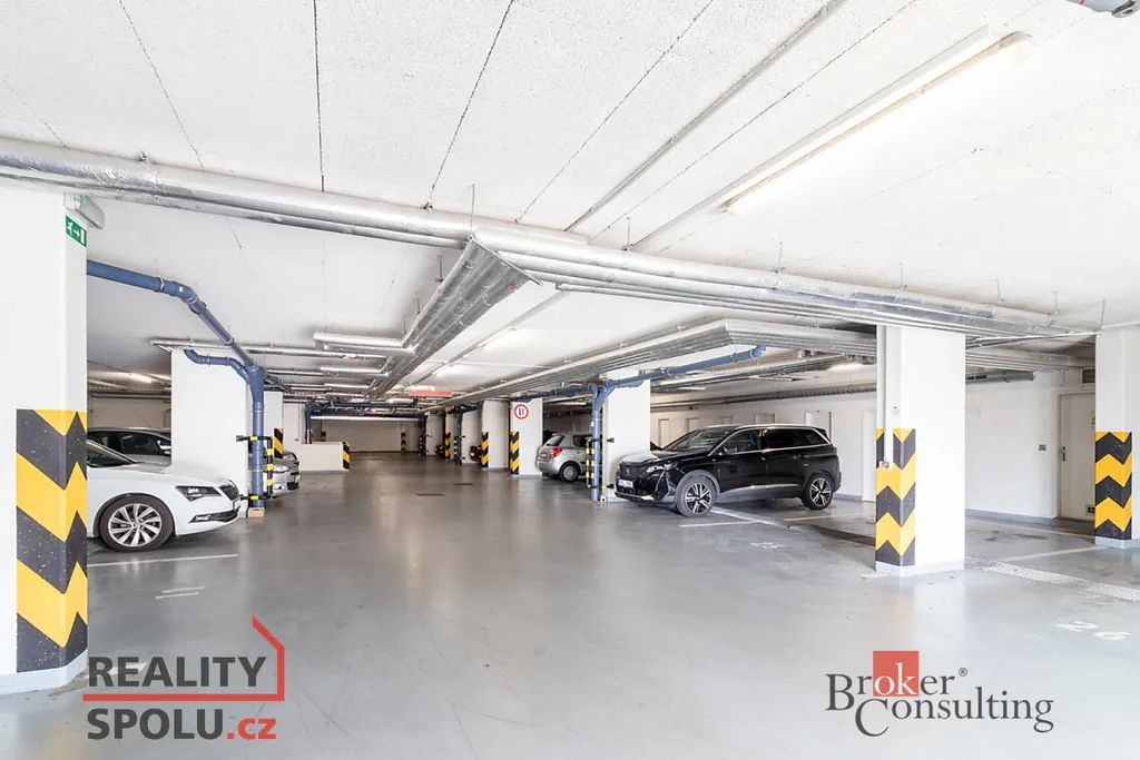 V ceně pronájmu je parkovací stání v podzemní garáži a komora, v domě je výtah.