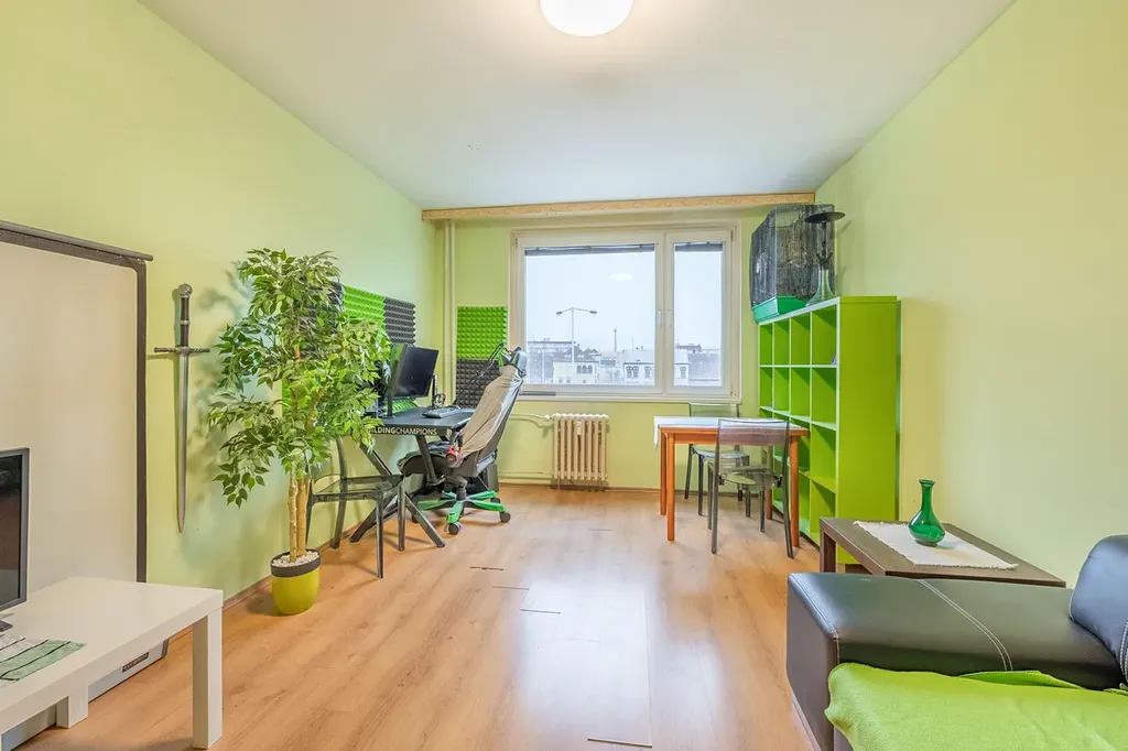 Bytová jednotka se skládá z obývacího pokoje s kuchyňským koutem, jehož součástí je kuchyňská linka, elektrický sporák, digestoř a lednice. Dále je zde ložnice, koupelna a samostatné WC. Ve vstupní chodbě se nachází prostorná vestavěná skříň. Na podlahách je plovoucí podlaha a linoleum. Okna jsou plastová s dvojskly, orientovaná na západní stranu.