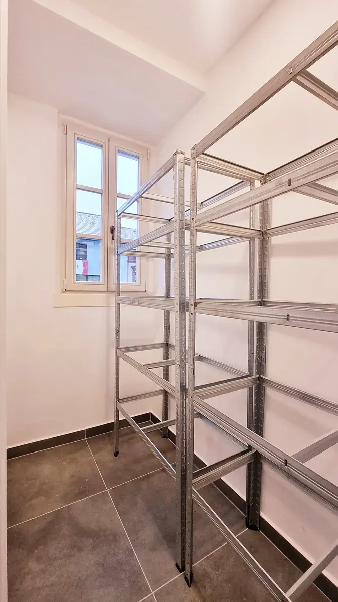 K bytu náleží také prostorný sklep (8 m²) v suterénu budovy.