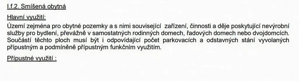 Maximální zastavěnost je stanovena na 35 %, s možností výstavby dvou nadzemních podlaží s podkrovím.