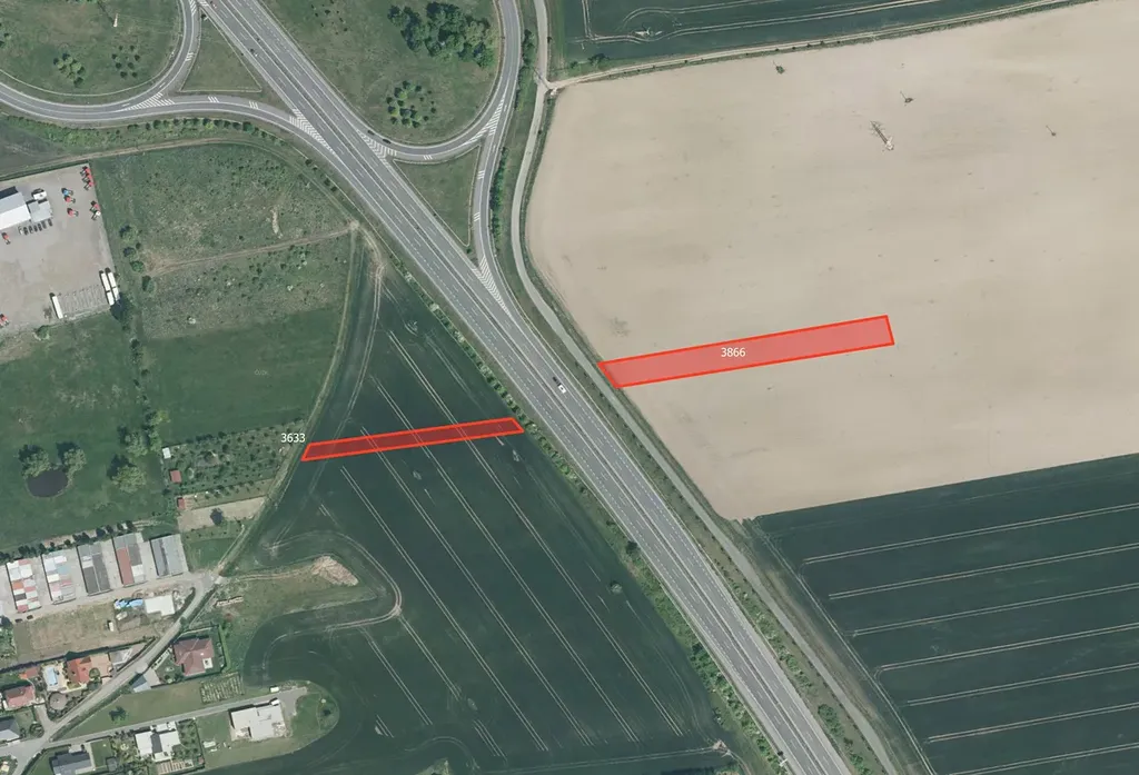 parc. č. 3866 – orná půda, celková výměra 2 765 m², prodávaný podíl činí 1 959 m² (LV 3736)
