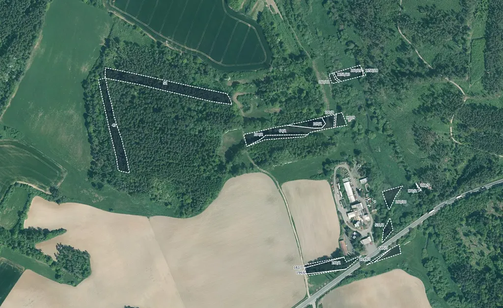Součástí prodeje je celkem 37 parcel o různém charakteru využití. Celková výměra všech pozemků činí 50 325 m², z toho největší podíl tvoří orná půda (24 177 m²), dále lesní pozemek (11 177 m²), trvalý travní porost (10 405 m²).