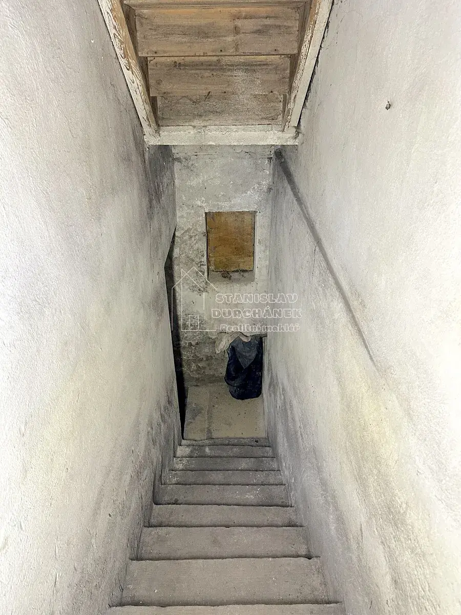 Vnitřním schodištěm se dostaneme do patra, kde je 1 obytná místnost a 2 podkrovní půdní prostory s potenciálem vybudování dalších obytných místností.