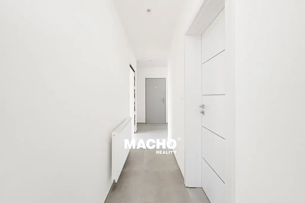 Bytová jednotka je dispozičně řešena jako 2+kk. Za vstupními dveřmi se nachází prostorná chodba, ze které je přístupný obývací pokoj s kuchyňským koutem, samostatná ložnice, koupelna se sprchovým koutem a toaletou a šatna.