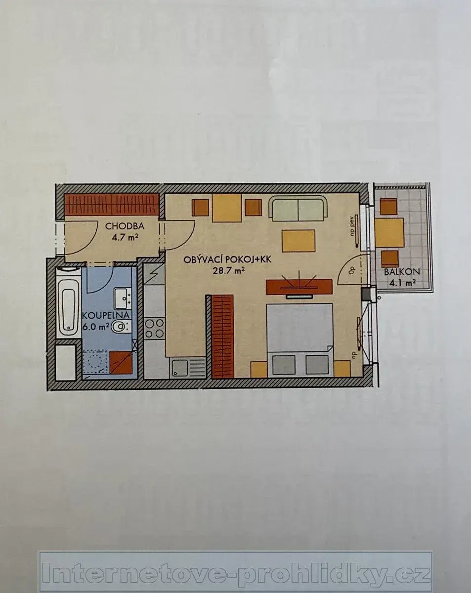 Družstevní byt 2kk s balkónem 47 m, kuchyňská linka včetně všech spotřebičů, ložnice oddělená policovou příčkou, v chodbě vestavěná skříň. K bytu náleží balkón o ploše 4 m. K dispozici sklep o ploše 2 m pro uskladnění sezonních věcí a dalšího vybavení. Nájemné 19 500 Kč + 5 000 Kč služby, energie se převádí na nájemce, 1 500 Kč parkovací stání v garáži. Vratná kauce 25 000Kč, provize 25 000Kč
