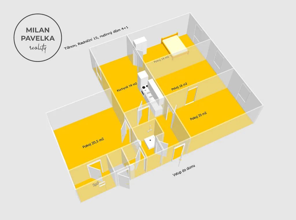 Celková plocha pozemku má výměru 295 m², zastavěná plocha domu je 162 m².