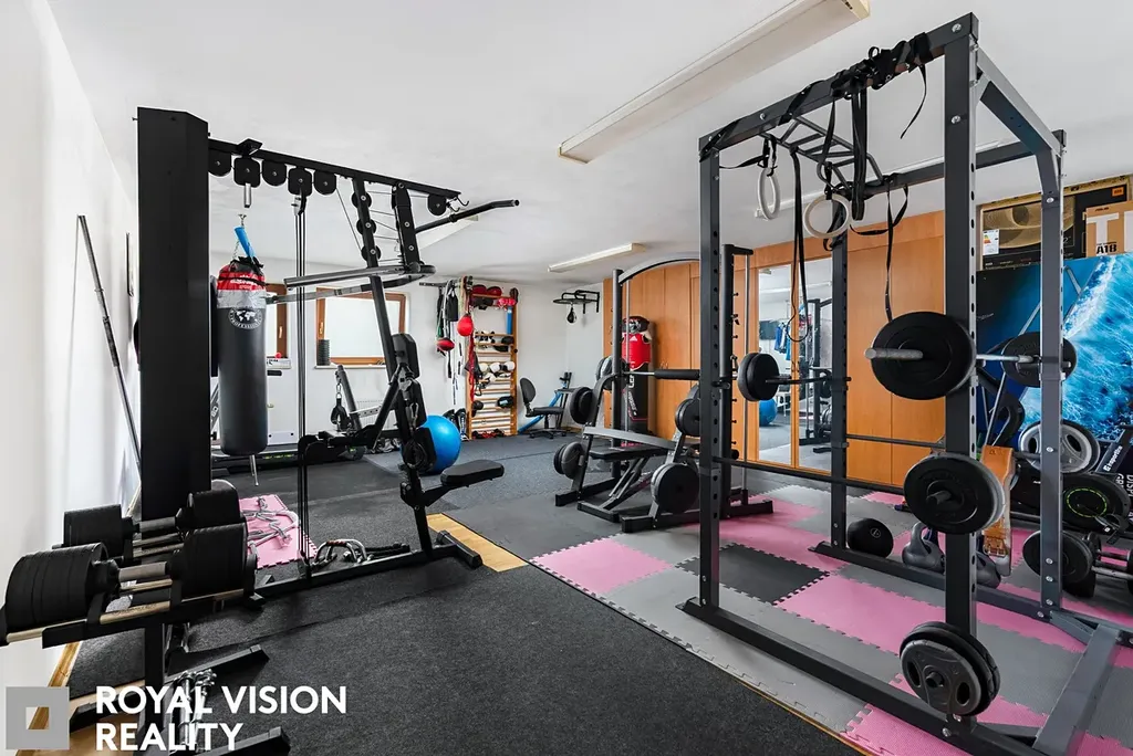 Aktuálně je zde velký sklad, posilovna, WC, sprchový kout a prostorná místnost s přímým vstupem ven. Celý prostor je velmi dobře větraný díky oknům. Součástí je také garáž pro dvě auta se sekčními vraty a přípravou pro elektromobil (360 kabel).