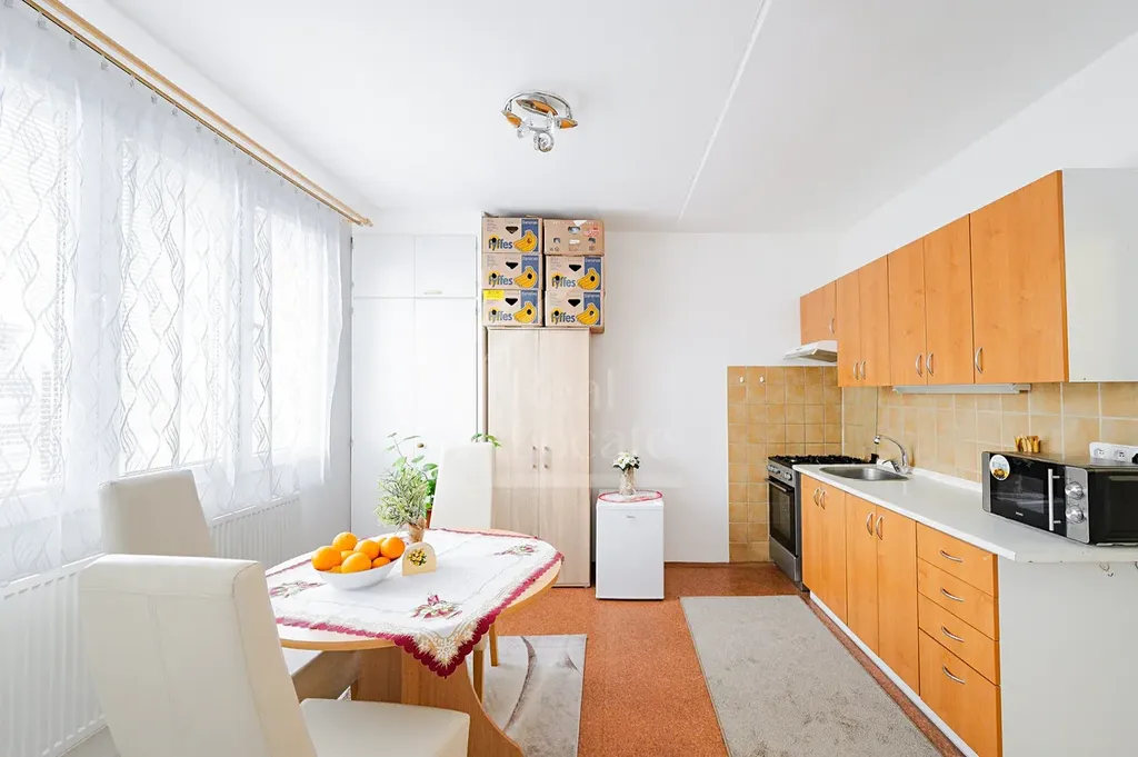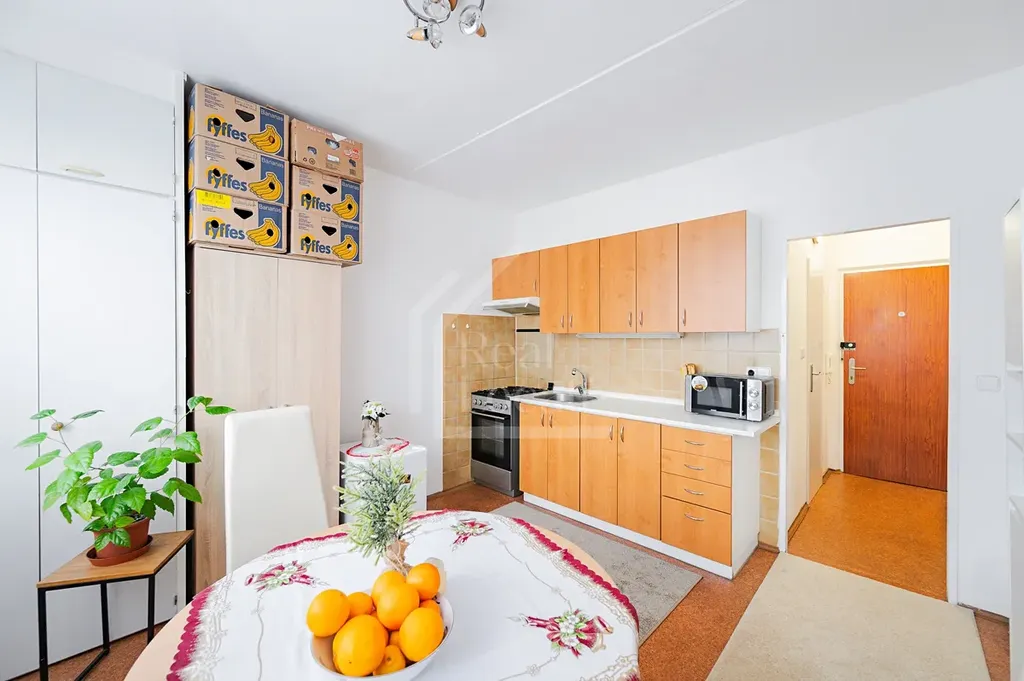 Nabízíme k prodeji světlý, částečně zařízený byt 1+1 cca 35m², který se nachází v 6 NP bytového domu s výtahem, v ulici Pod Ohradou, Rokycany. Byt sestává z velkého obytného pokoje, momentálně zařízeného jako ložnice a pracovna. Dále, místnosti plnící funkci kuchyně a jídelny. A zrekonstruované koupelny se sprchovým koutem a toaletou. Dispozice bytu umožňuje přebudovat na plnohodnotné 2kk. K bytu dále náleží společný balkon na chodbě s moc hezkým výhledem na sportovní areál. Klidná lokalita nedaleko centra Rokycan s veškerou občanskou vybaveností v docházkové vzdálenosti.