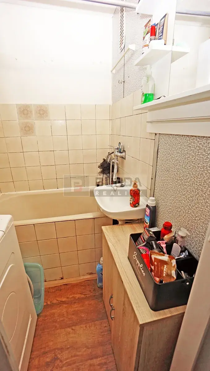 V původním bytovém jádru je v koupelně vana 120 cm, umyvadlo a přípojky pro pračku. WC je samostatné. Kuchyňská linka je vybavena elektrickým sporákem zn. Mora.