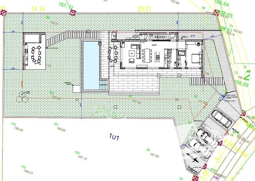 Vila je situována na prostorném pozemku o velikosti 1 080 m² a nabízí hrubou obytnou plochu 242,95 m² rozloženou do dvou podlaží. Součástí venkovní části je bazén o velikosti 36,30 m², letní kuchyně s plochou 23,88 m², samostatné venkovní úložiště a tři parkovací místa. Celý koncept domu je navržen s důrazem na komfort, funkčnost a soukromí.