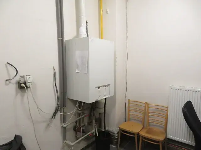 Přípojky nebylo možné ověřit. Vytápění je 3 plynovými kotli. Ohřev teplé vody