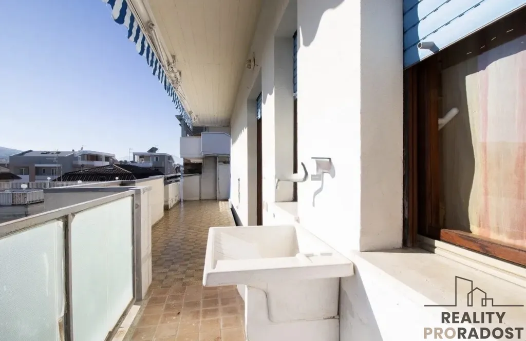 Velkým benefitem nemovitosti je střešní terasa o rozloze cca 140 m² s úchvatným výhledem na moře a hory, dále sklep a sdílené parkovací místo. Díky výjimečné poloze v centru města, v docházkové vzdálenosti od moře i veškerých služeb, je nemovitost perfektní jak pro vlastní bydlení, tak jako zajímavá investiční příležitost.