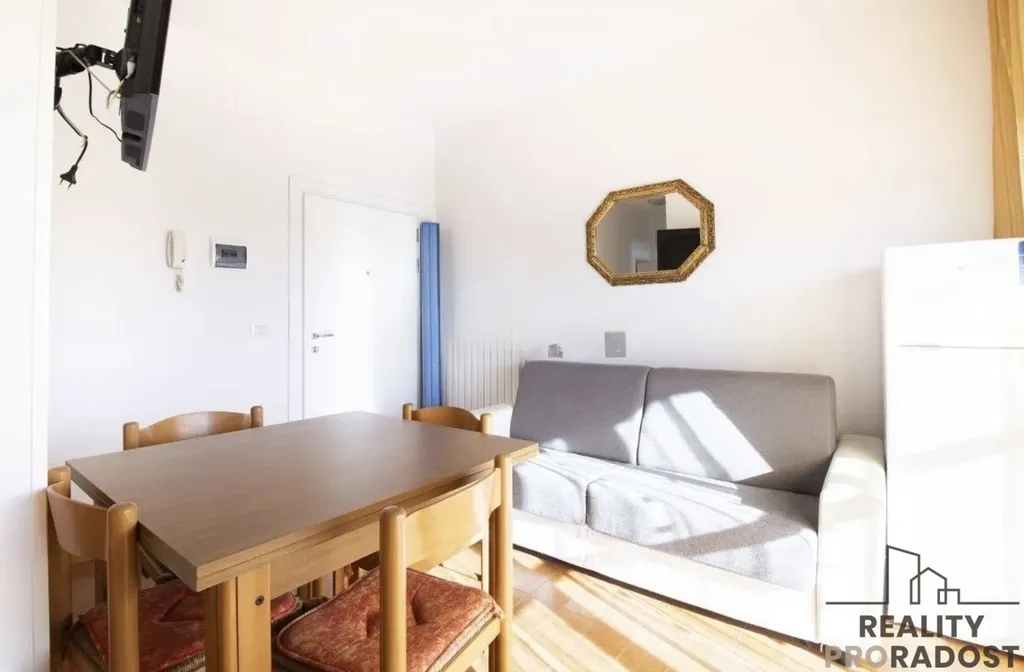 Byt nabízí světlý obývací prostor s otevřenou kuchyní a dvoulůžkovou ložnici s francouzským oknem. Všechny místnosti se otevírají na velkou, jižně orientovanou terasu, ideální pro relaxaci na slunci po celý den. Byt je vybaven bezpečnostními dveřmi, novým kotlem a markýzami.