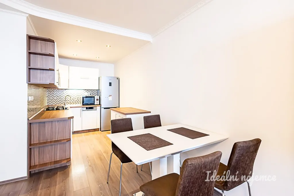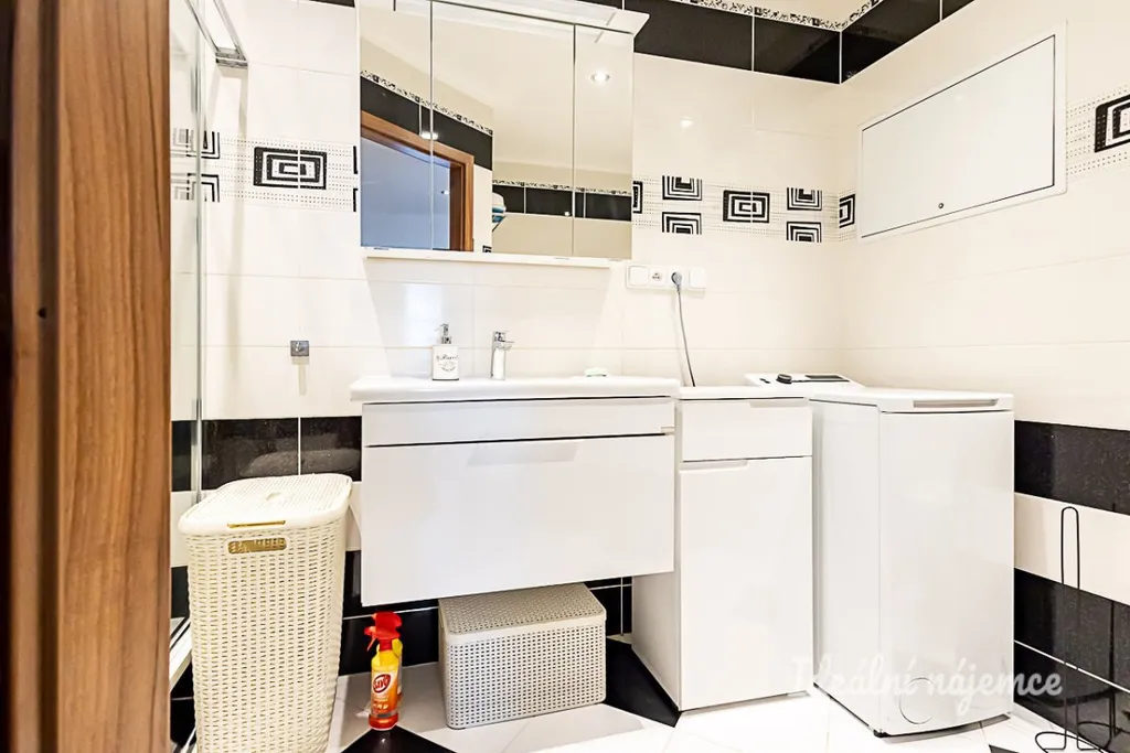 Srdcem domova je prostorná hlavní obytná místnost s jídelním koutem, na kterou plynule navazuje moderní kuchyňský kout vybavený všemi potřebnými spotřebiči včetně myčky, elektrické i mikrovlnné trouby a lednice s mrazákem. Obývací část s pohodlným gaučem a úložnými prostory je stvořena pro společné rodinné chvíle. Soukromí zajišťují dva samostatné neprůchozí pokoje, které jsou v současnosti funkčně rozděleny na ložnici a dětský pokoj. Velkou předností je koupelna, která nabízí vzácnou kombinaci sprchového koutu i vany, doplněnou o pračku a toaletu.
