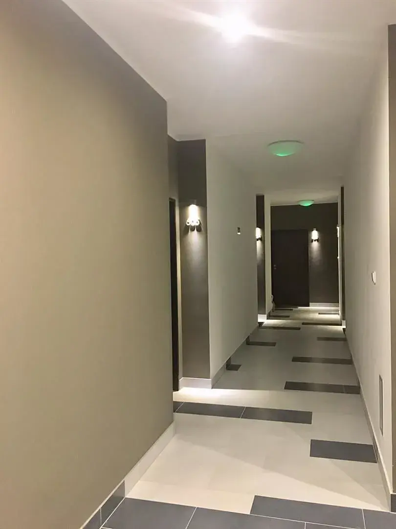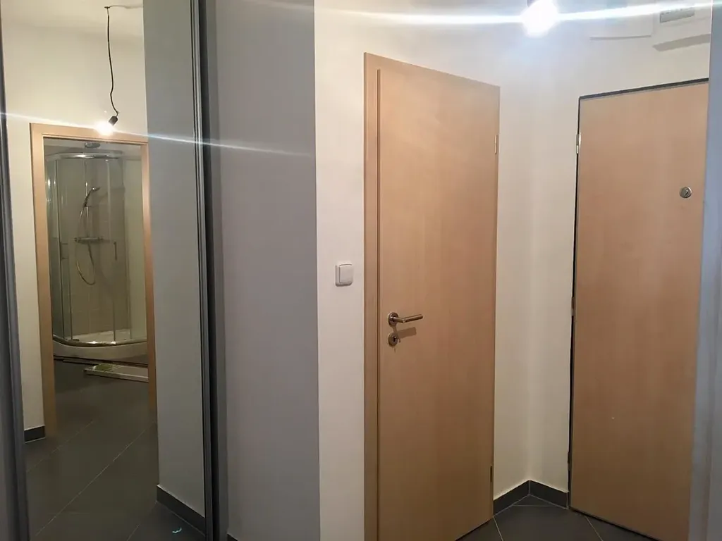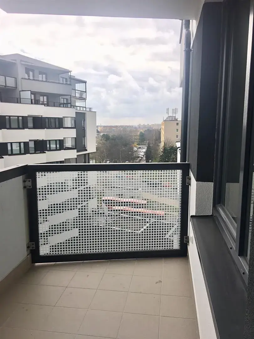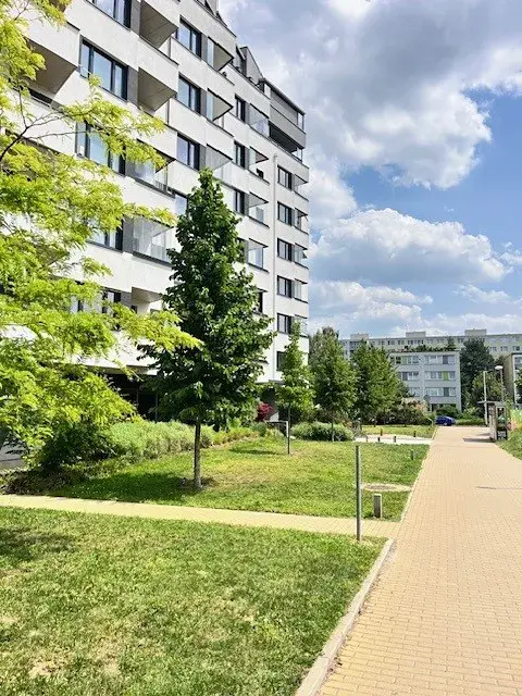 Byt se nachází v 6. patře s terasou a s orientací do vnitrobloku. Dispozice bytu – předsíň s vestavěnou šatní skříní, koupelna se sprchou a wc, komora a vstup do obývacího pokoje s kuchyňským koutem. Obývací pokoj má terasu. Skrz obývací pokoj vstup do ložnice s vestavěnou skříní. Kuchyňka je plně vybavená (myčka, lednice, varná deska, horkovzdušní trouba). K bytu dispozici parkovací stání v přízemí. Byt vhodný pro pár, bezúhonného zodpovědného nájemce, nekuřáka bez zvířat. (Domácí mazlíčci na dotaz).