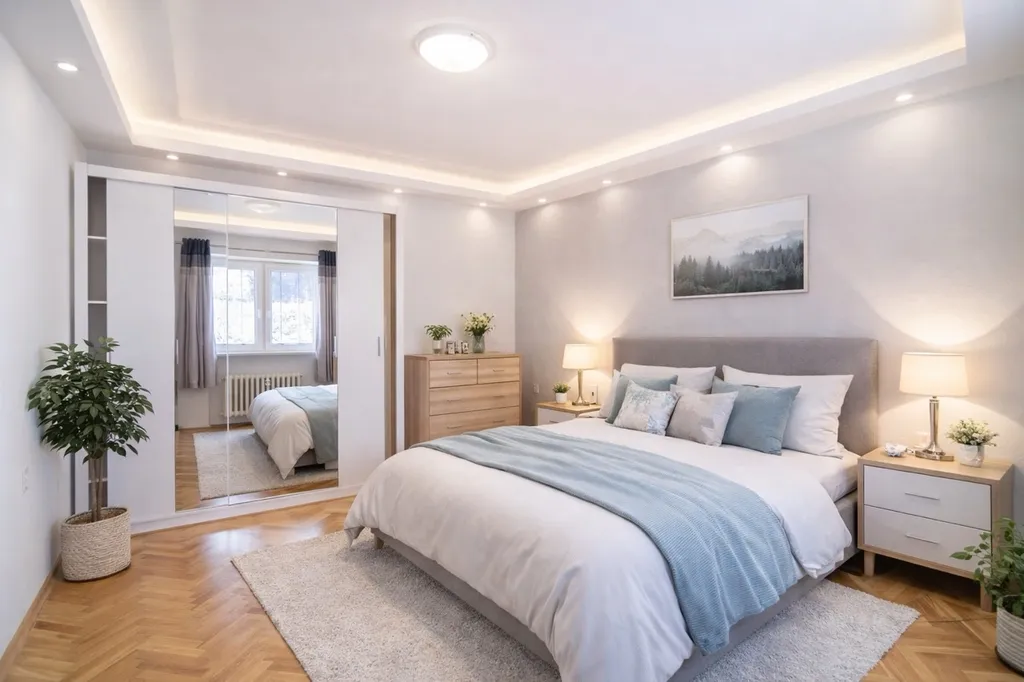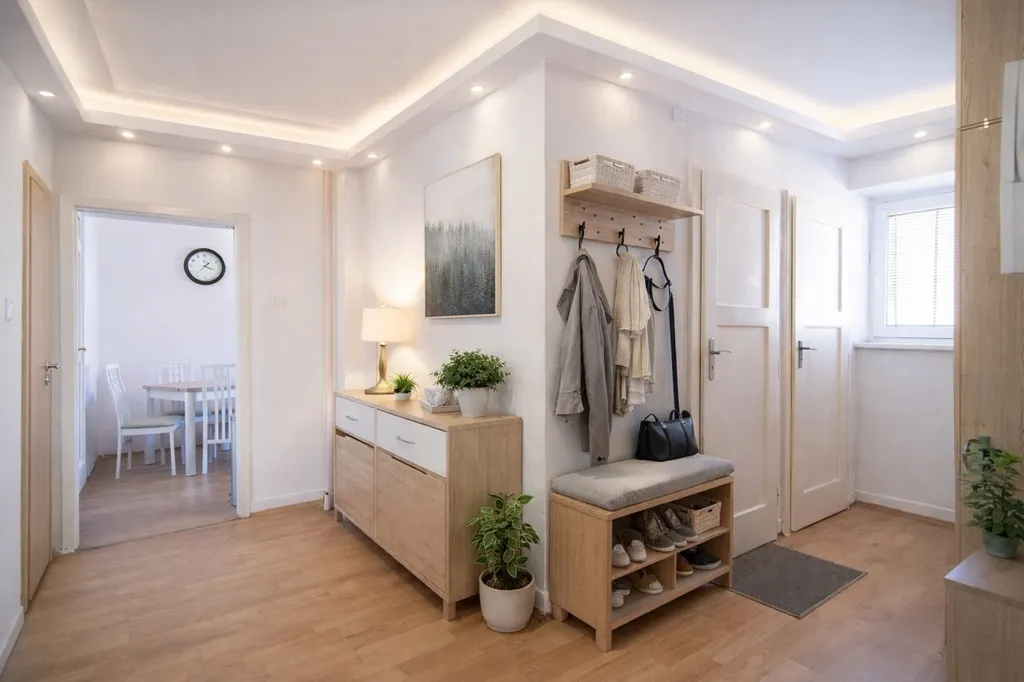 Dispoziční řešení je praktické, vzdušné a funkční – ideální pro jednotlivce, pár i menší rodinu.
