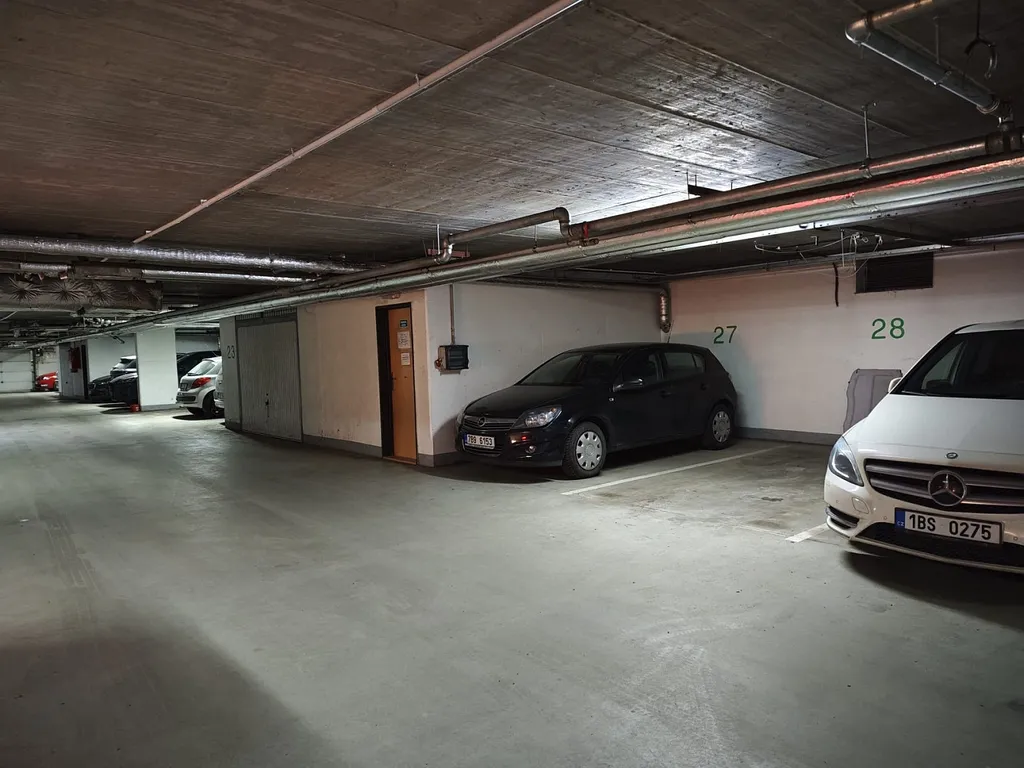 Parkovací stání je navíc vybaveno stropním držákem na rakve, který umožňuje efektivní využití prostoru a uložení sezónních či objemnějších věcí.