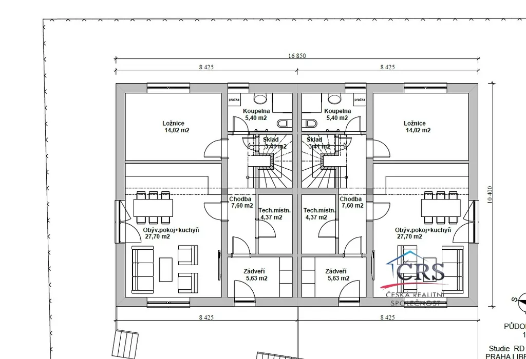 Každý dům dispozičně 6+kk s terasou ve třech patrech a celkem 4 parkovací místa.