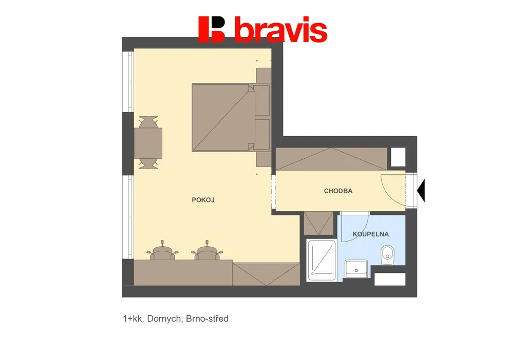 Pronájem bytu 1+kk, Brno - Trnitá, Dornych, 26 m2