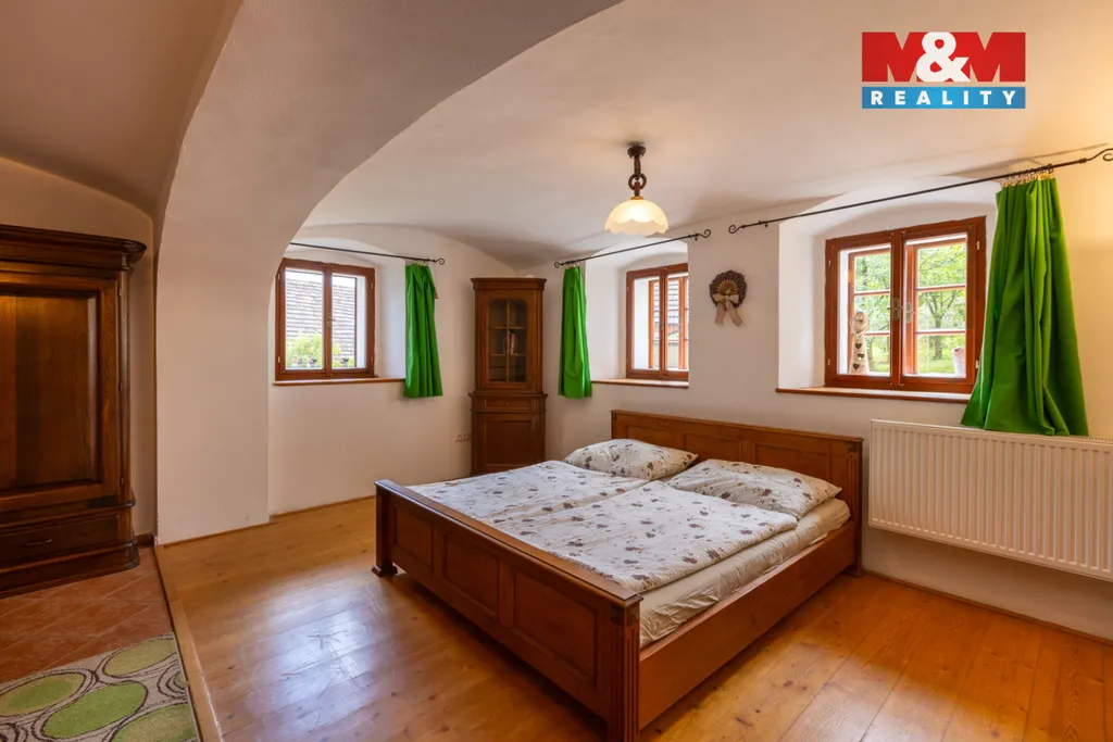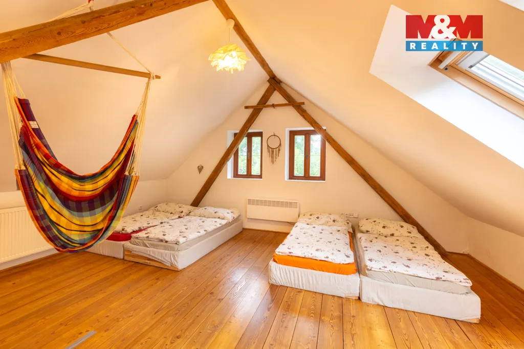 Dovolte mi Vám nabídnout kouzelnou chalupu s velkým pozemkem v obci Mezno-Stupčice, v lokalitě Česká Sibiř. Po vstupu do této překrásné nemovitosti vstoupíme do chodby, odkud vedou schody do horní patra. Vlevo vcházíme do útulné světnice vybavené vkusným nábytkem, po pravé straně se nachází kuchyň a dále koupelna se samostatným WC. V horním patře se nachází dvě velmi prostorné ložnice a druhá koupelna s toaletou. Z dvora můžeme vstoupit do další samostatné místnosti, kde majitelka plánovala vybudování sauny s vířivkou. U nemovitosti se nachází velmi rozsáhlá přístavba, kde je možno vybudovat další ubytovací prostory. Na pozemku se nachází dvě pergoly a bazén. V horní části oploceného pozemku byli v minulosti daňci. Za zmínku stojí napojení na obecní kotelnu na biomasu, kdy roční náklady nepřesáhnou dvacet tisíc korun. Tato chalupa, která je v současné době pronajímána, prošla celkovou vkusnou rekonstrukcí a bude předána včetně vybavení. Neváhejte si zavolat o prohlídku.