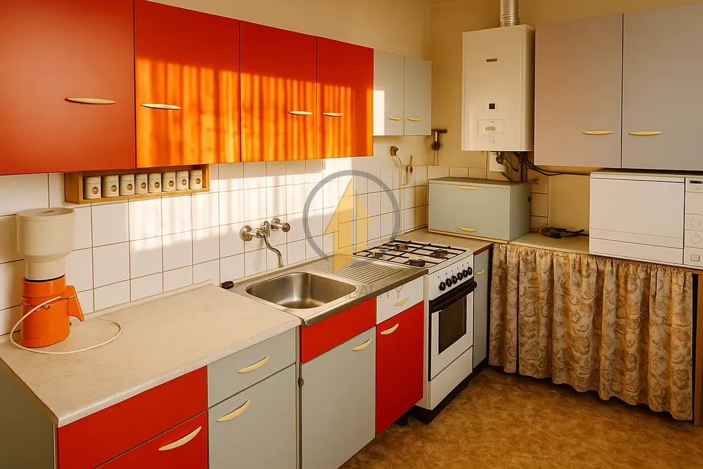 Byt je středový, což zajišťuje nízké náklady na vytápění.